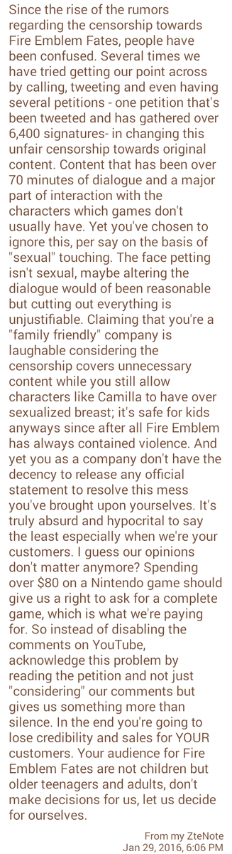 @nintendoamerica Don't ignore this issue. Censorship on unnecessary content is absurd. https://www.change.org/p/nintendo-do-not-censor-fire-emblem-fates-for-it-s-worldwide-release?recruiter=272018711&utm_source=share_petition&utm_medium=copylink … pic.twitter.com/FOy0hO2FhX