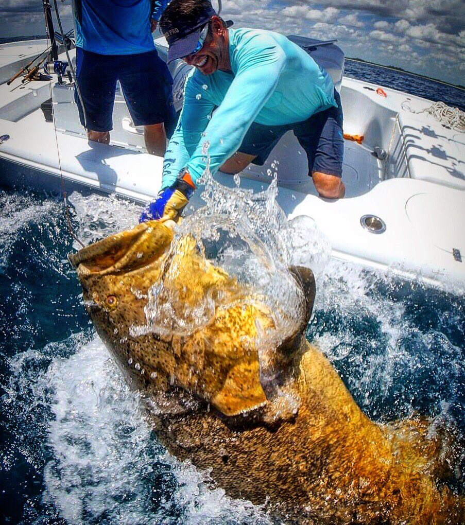 Weekend workout is going better than expected. Check out this giant Goliath Grouper I hand lined up from 36 feet.