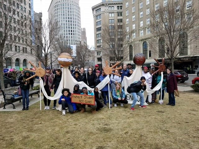 Roxbury Prep performing arts teacher Mr. Levesque worked with students to create "peace puppets" for the march.pic.twitter.com/hZVPW3dEGB
