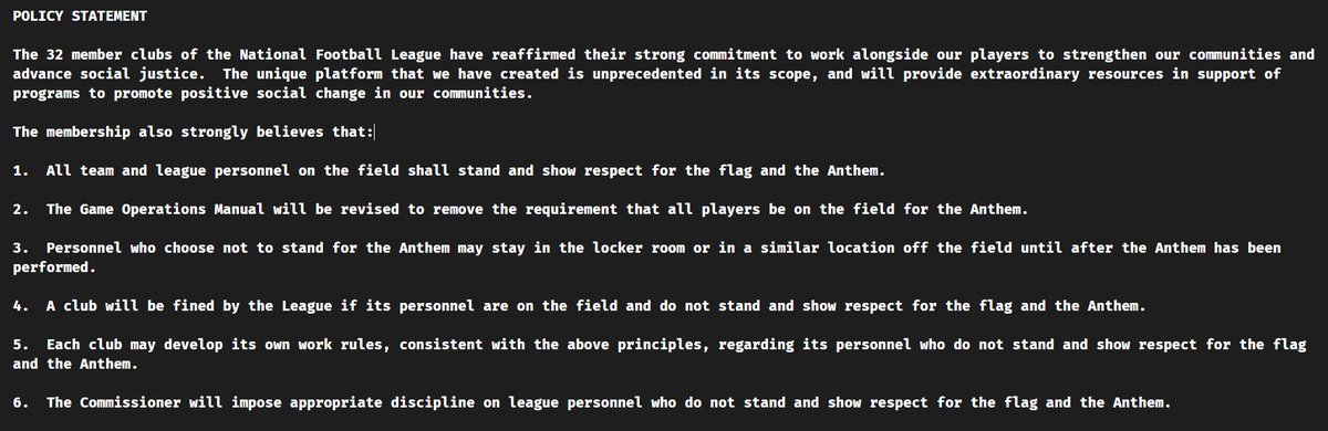 I'm done with the NFL over this. The players have every right to do what they want during the anthem. Game over, Goodell.
