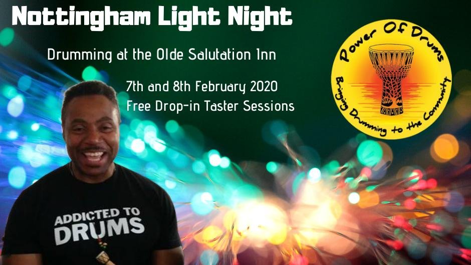 Nottingham Night Light is nearly here! We are offering our 7pm Friday evening and 2pm Saturday afternoon 'Night Light specials' for FREE so everyone can get a taste of our cave drumming at the Old Salutation Inn. Drop in and leave as you wish!