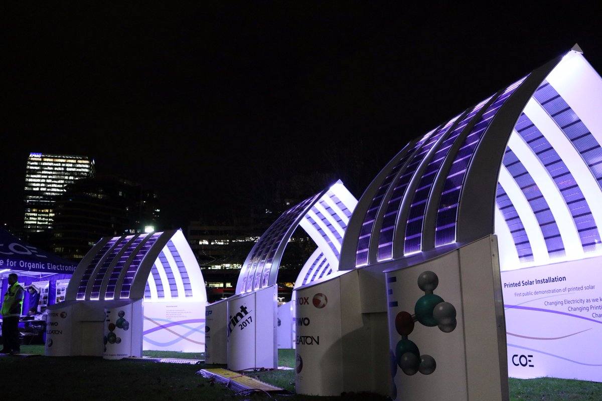 Excited to see Prof Dastoor's printed solar sitting proudly against a Melbourne CBD backdrop. A must see, especially at night!