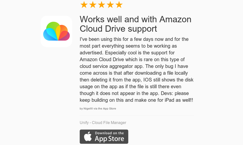5 Star Review "Works well and with Amazon Cloud Drive support: I've been using this for a f…" https://launchkit.io/reviews/13yEdjFBfdw …pic.twitter.com/FHFqaIYf06