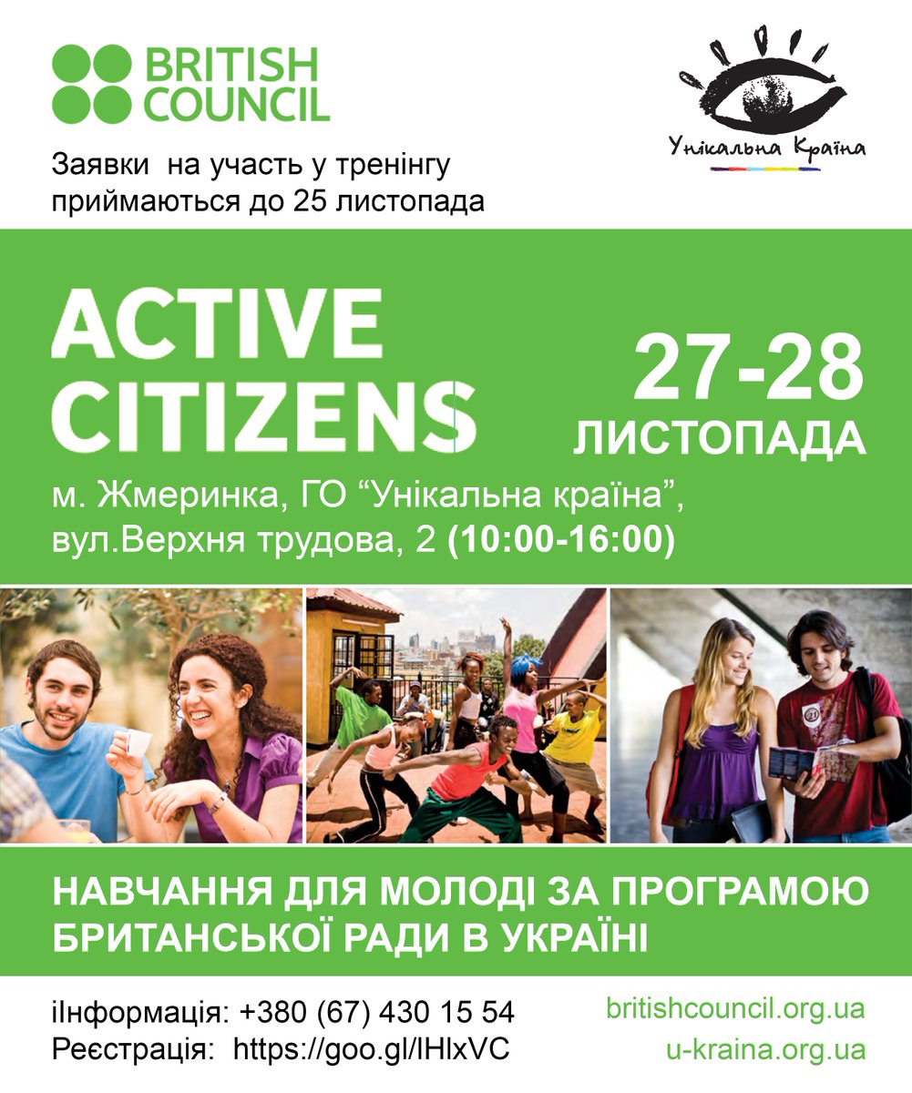 Використай можливість взяти участь у програмі Британської Ради - Активні громадяни. Зареєструйся до 25 листопада https://goo.gl/lHlxVC pic.twitter.com/jp3wnSNk3U