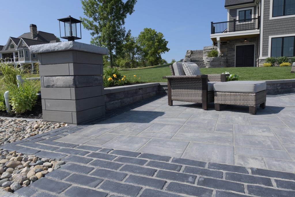 This modern outdoor haven was crafted by Superior Lawn & Landscape, Inc. in Linden, MI. The cool color scheme and use of geometry complements the sophisticated architecture of the home, while highlighting brighter hues in the #softscape.