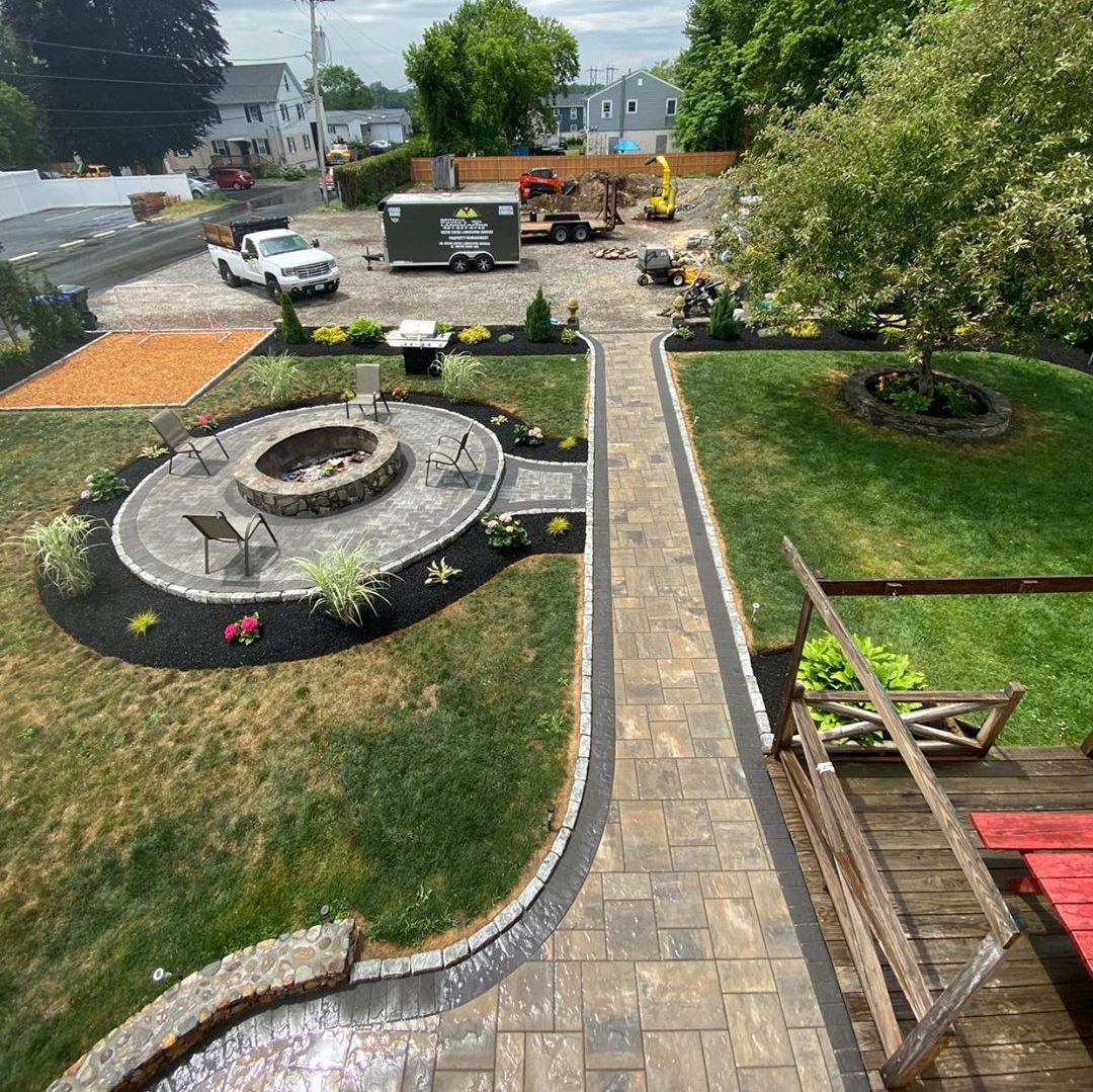 Beacon Hill Flagstone path in Sierra and Hollandstone in Charcoal and Granite kicking it together in this install by Milton Costa & team
