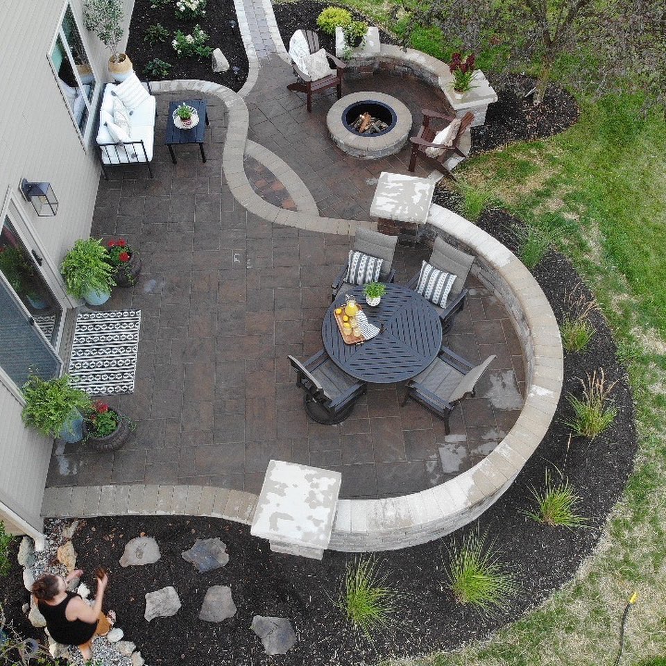 Awesome backyard space by @halls_lawn_landscape! Complete with paver patio, fire pit, and seat walls.