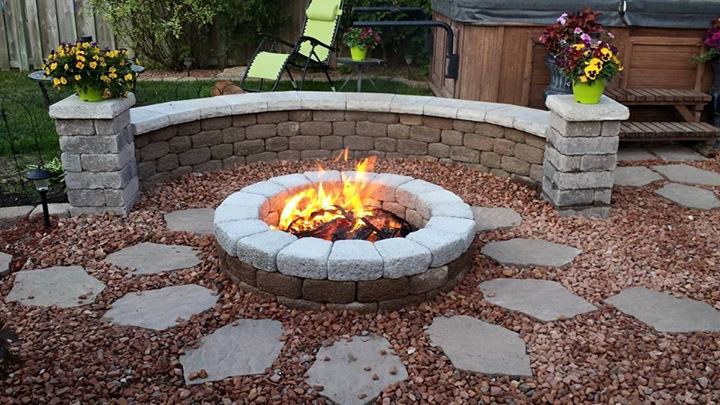 Fire pit completed last week in Barrie. Using @UnilockLife brussels dimensional stone and unilock coping.pic.twitter.com/rhdCjPZSm5