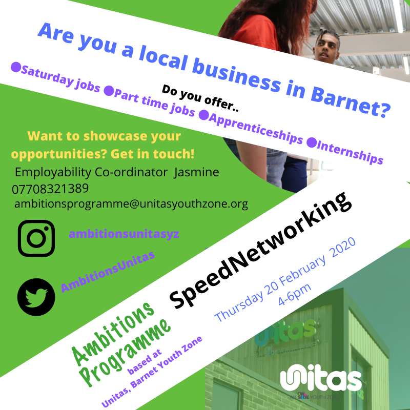 Why not join our Ambitions Programme Speed Networking event on Thursday 20 Feb, 4-6pm at Unitas. Call Jasmine on 07708321389 for more info.pic.twitter.com/DCyA0soCfJ