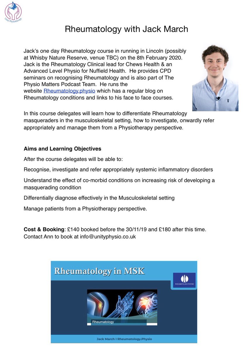 #rheumatology course with@physiojack is happening in#LIncoln in 6 days time. There are a few places left, get in touch if you would like to join us. Info below