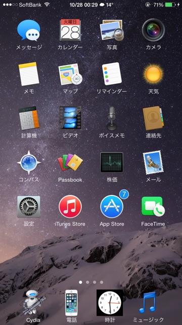 iPhone6 Plus 脱獄完了! とりあえずWinterBoardでiOS7のテーマ適応したけど やっぱ全然やな アイコンマスクを透明の方法は使えるっぽいわ さてこれからテーマ作りますpic.twitter.com/JmjYc2tmGR