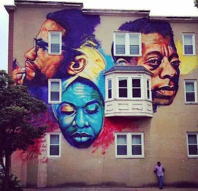 “@UrbanCusp: Malcolm X, Nina Simone and James Baldwin. Public art by artist Ernest Shaw in #Baltimore. #repost pic.twitter.com/3HKYKy6AN8”