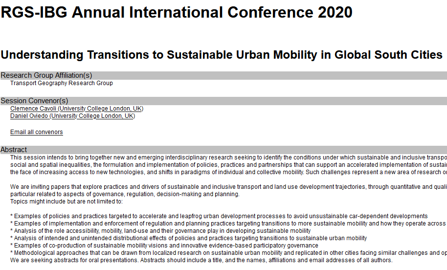 @RGS_IBG#RGSIBG20 London, 1-4 September Join our session focusing on 'Understanding Transitions to Sustainable Urban Mobility in Global South Cities' with@danieloviedoh Apply by Feb 10th! http://conference.rgs.org/CallForPapers/View.aspx?heading=Y&session=cca11203-cf44-4833-ab2c-562f78eacb0c …pic.twitter.com/xFrW9I6a6V