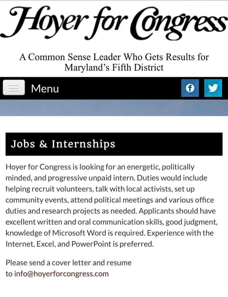 So @StenyHoyer has millions of corporate PAC cash sitting on reserve, and is simultaneously asking for unpaid labor? This is cheap, sleazy, and shameful on his part to allow this on his campaign. Pay your staffers a living wage Steny.pic.twitter.com/ibHtqqtjHT
