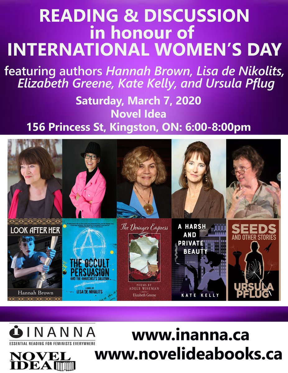 #Kingston, please join us for the second annual#IWD2020 reading at@NovelIdeaYGK. Looking forward to this, it was so much fun last year. Please share, we hope to see you. Thanks to@InannaPub InannaPub for taking such good care of us.pic.twitter.com/TzDx0p9Nxt