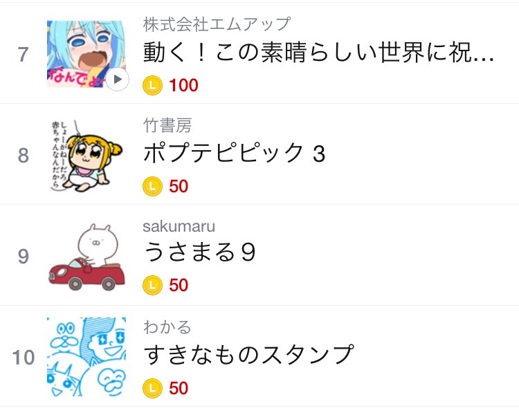 すきなもの店のLINEスタンプがなんとトップ10入りしました