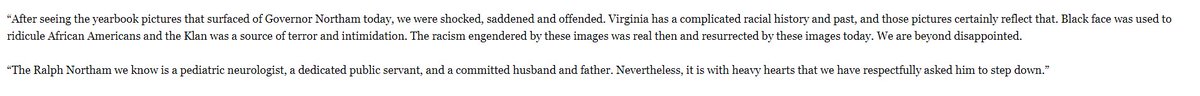 Thanks for asking Northam to resign. But compare this statement to words by