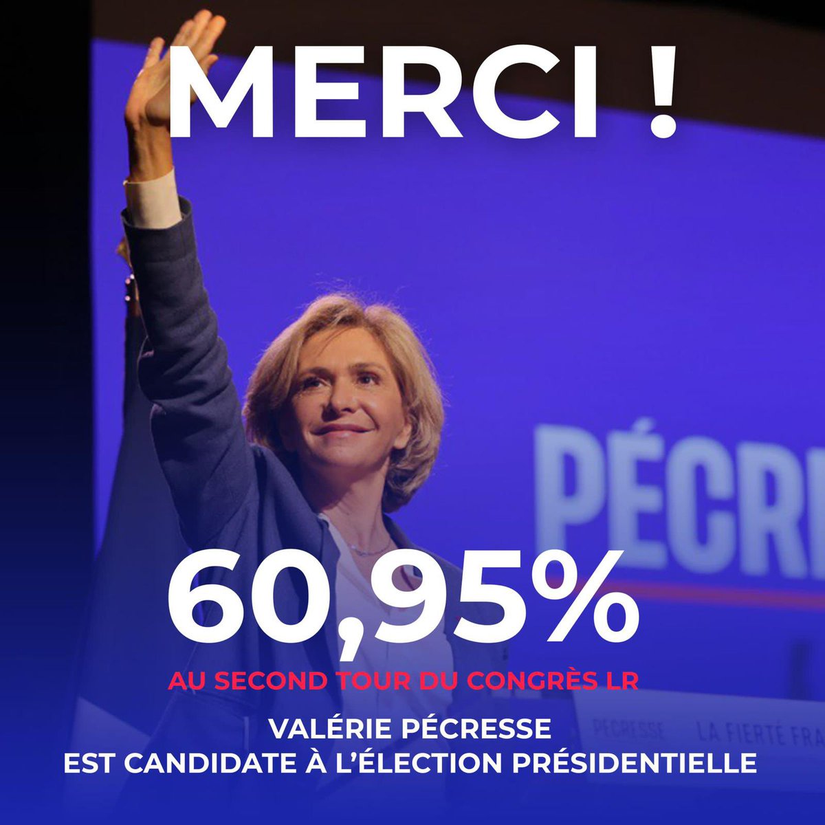 @vpecresse pour cette belle qualification au 2e tour du#CongresLR. Prochaine étape, la victoire de la primaire samedi prochain ! Bravo à tous les candidats au congrès pour cette campagne respectueuse et constructive ! Maintenant, place au rassemblement !pic.twitter.com/uaLrVOb073