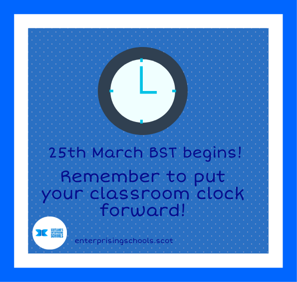 A wee reminder to put your classroom clocks forward today as BST begins Sunday at 1am