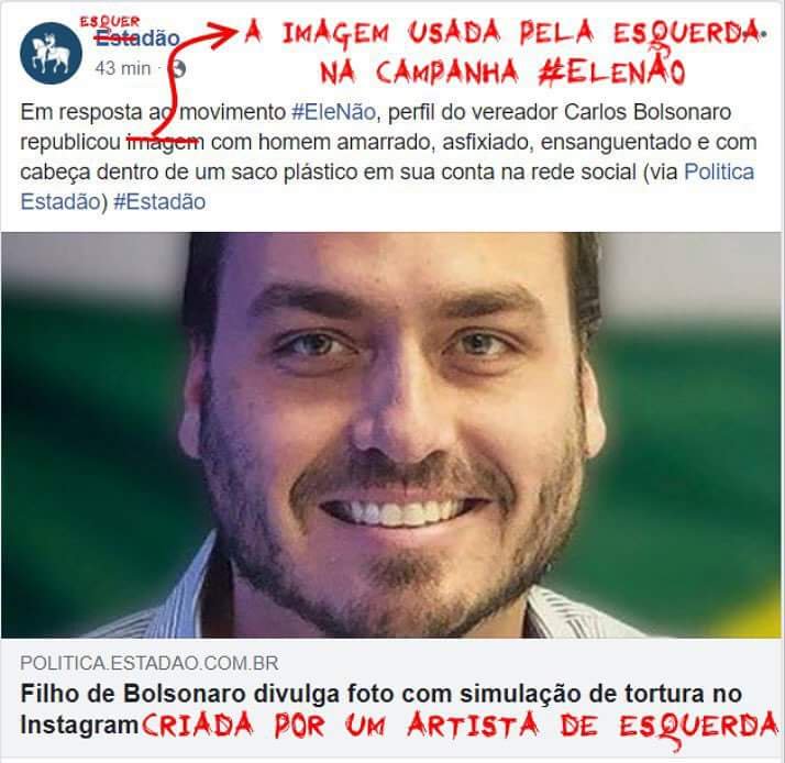 "Carlos Bolsonaro COMPARTILHA imagem de lacrador do elenao" Esse é o título correto, revista inútil.