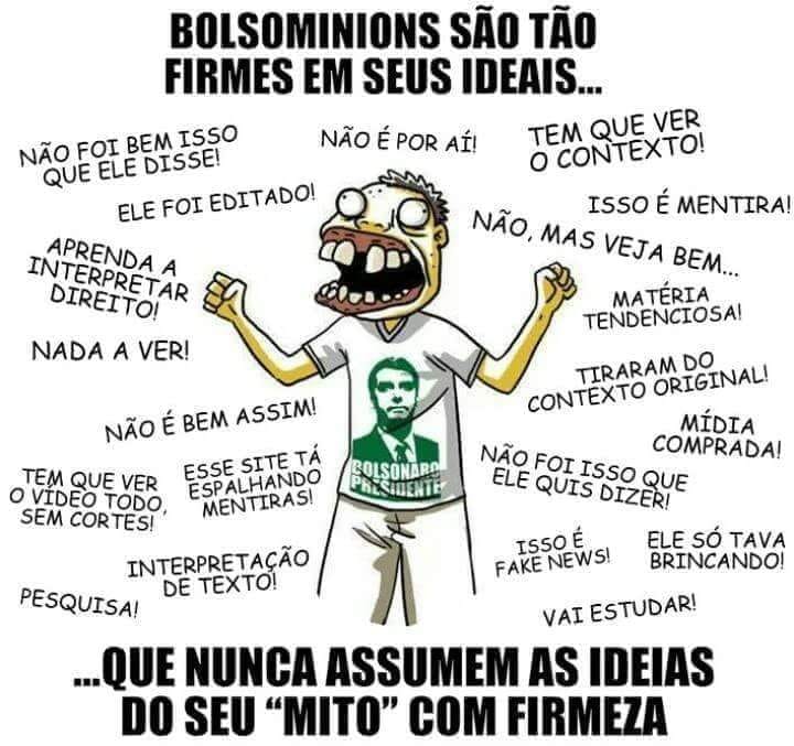 Engraçado ouvir um eleitor de Bolsonaro criticando fake news enquanto seus colegas fazem uma campanha baseada em espalhar mentiras no Youtube e Whatsapp.