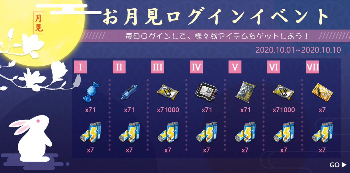 「お知らせ」 新イベント情報: お月見ログボ 毎日ログインして、様々なアイテムをゲットしよう!連続ログイン7日後に、レアガチャ券7枚が手に入れる! イベント時間:10月1日から-10月10日までpic.twitter.com/gIlntGu3KV