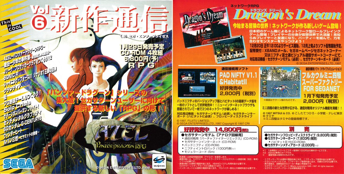 Dragon's Dream, probably the first console MMORPG, advertised in Shinsaku Tsūshin Vol.6, a Japanese promotional leaflet for Saturn games.pic.twitter.com/xYHqxIIEhy