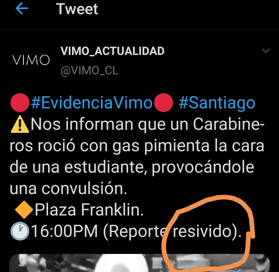 Nos informan que un Carabineros roció con gas pimienta la cara de una estudiante, provocándole una convulsión.