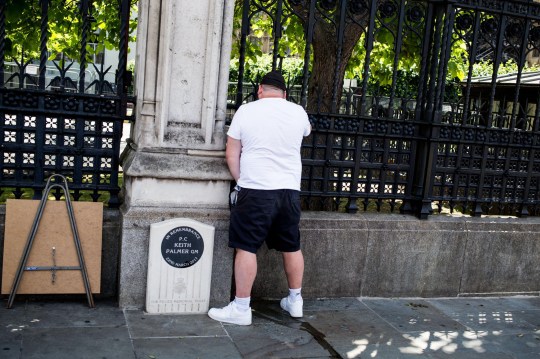 This photo of a man urinating on PC Keith Palmer's memorial really sums up the Far Right at Parliament Square.pic.twitter.com/uokVMrVfWf
