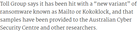 So, hearing that Toll Group got hit with ransomware that is caled "Mailto"... But (just as with REvil), we can take a look at the decrypter for it, and then we see they named it "Netwalker Decrypter", instead of "Mailto Decrypter" or anything else...