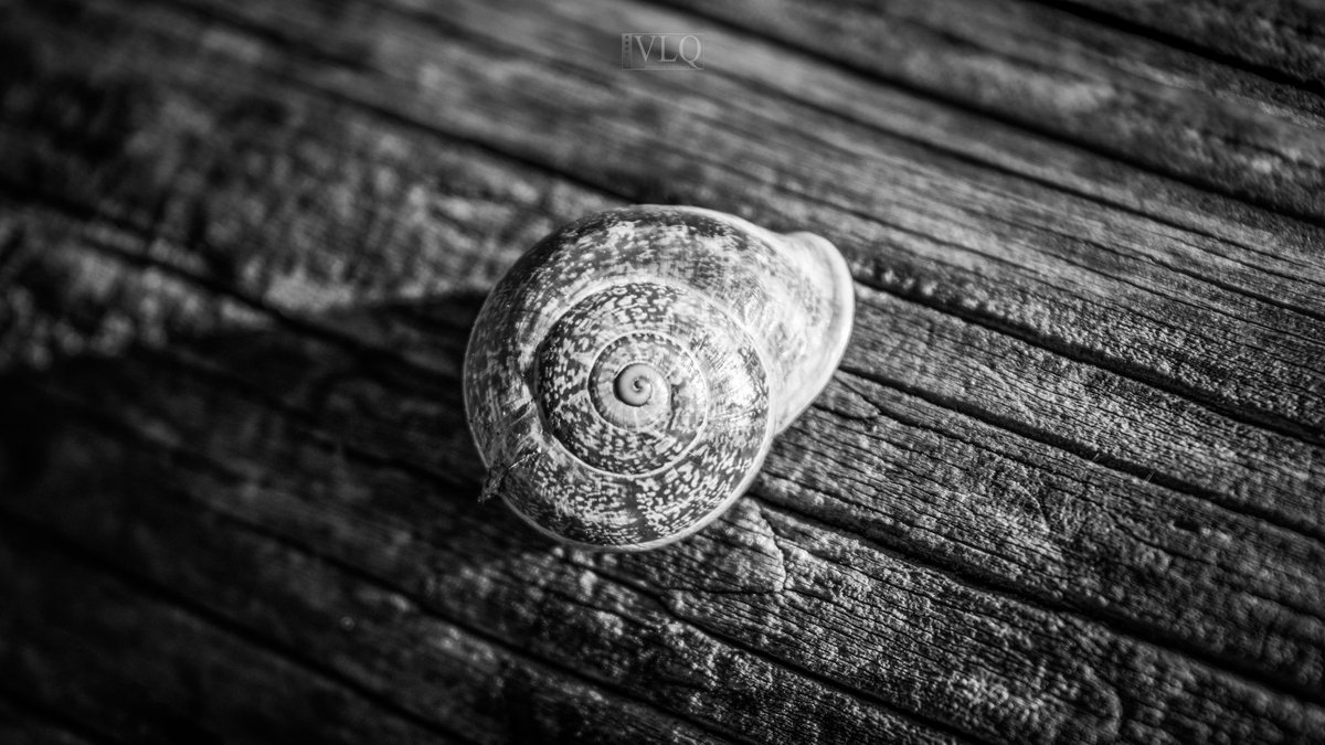 "Escondido" Fotografía en blanco y negro del caparazón de un caracol.