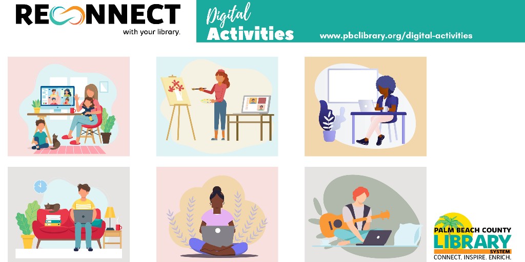 Did you know all of our virtual activities are free? All of our branches are just a click away, no travel necessary. Reconnect with your Library anywhere! Visit http://www.pbclibrary.org/digital-activities ….