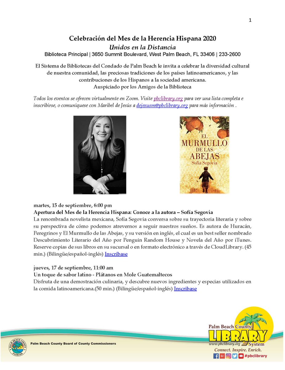 @pbclibrary Celebra#HispanicHeritageMonth 2020 Unidos en la Distancia. Eventos en Zoom http://pbclibrary.org@PRHChamber@PBHChamber@AZATV48@EsolPbc@ElSolJupiter@centromaya430@southPbcsd@Area4SuptPBCSD@GladesRegion@hainesv@pbcgov@bgc_pbc@ACEofPBC@tusnoticiaspbpic.twitter.com/MXHvThbwGx