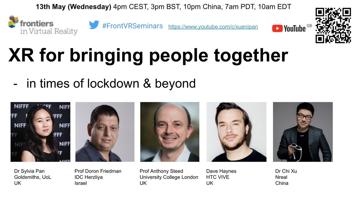 if u r up 4 #FrontVRSeminars panel Tomorrow 3pm BST XR for bring people together - in the times of lockdown & beyond@doronfriedman@anthony_steed@haynes_dave@htcvive &@chimtx@Nreal Watch live & join the discussion!