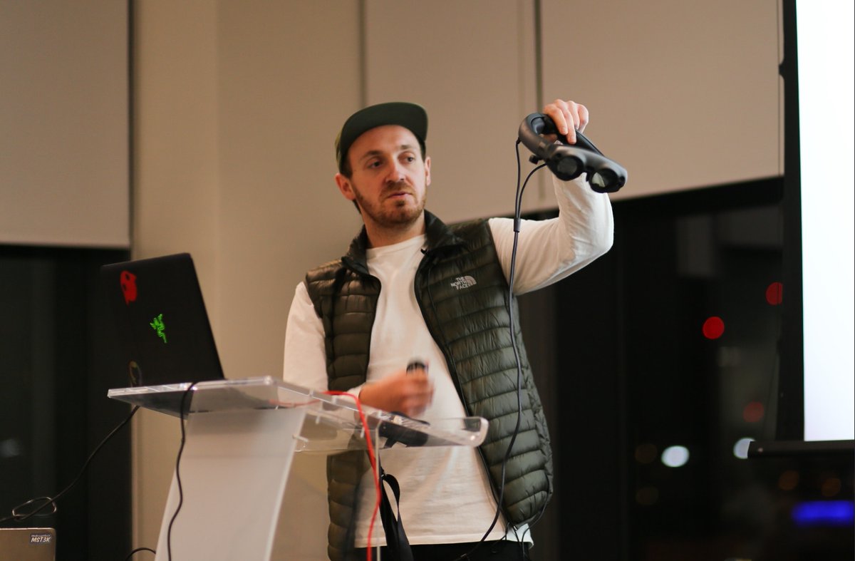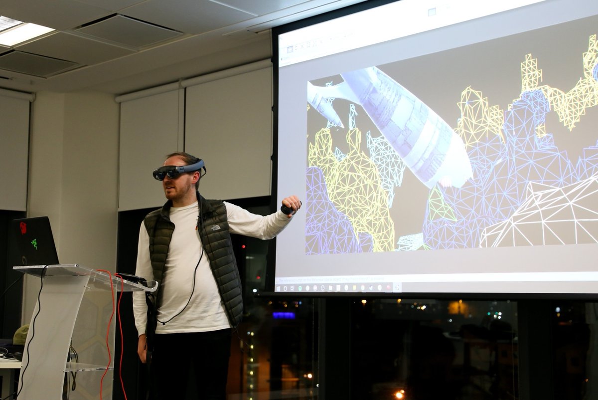 @VRManchester with a fantastic audience. I introduced Magic Leap to many new people, spoke about designing for spatial computing and crashed some rockets into the meshed audience. You can dev with or without a device using the simulator. https://developer.magicleap.com/learn/guides pic.twitter.com/LjzKFAvQKc