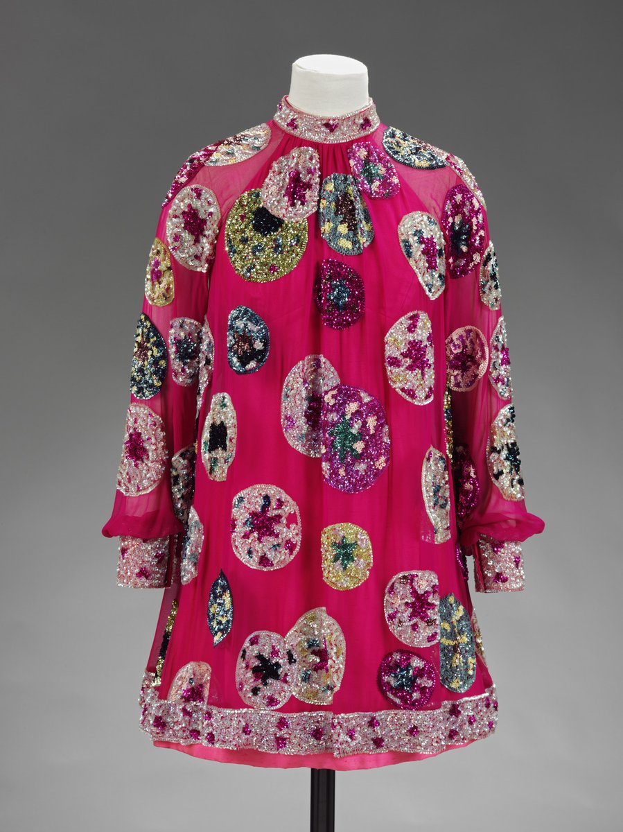 2. Shocking pink silk chiffon, appliqued with sequins. Worn by Sandie Shaw for her Royal Variety Performance in 1967. Maker unknown.pic.twitter.com/V4qxhOhaNU