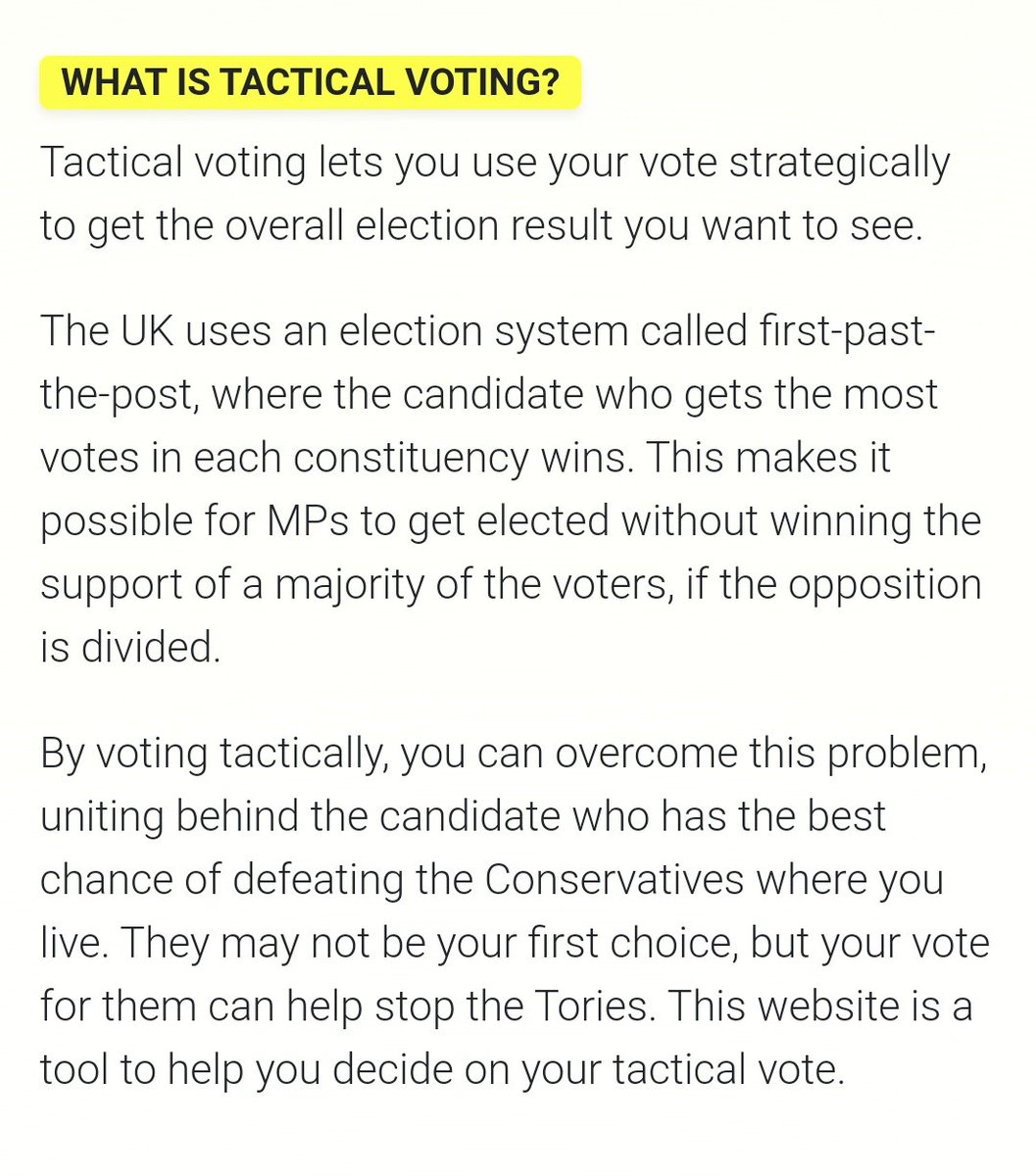 It might feel nice to vote for the party you like the best. But if they have no chance of winning the seat, you might want to vote tactically instead. This isn't just about who you want in power. It's about who you *don't want* in power. ◻️ ✖️✍️ ◻️ https://tactical.vote/ pic.twitter.com/aEAf1lqUec