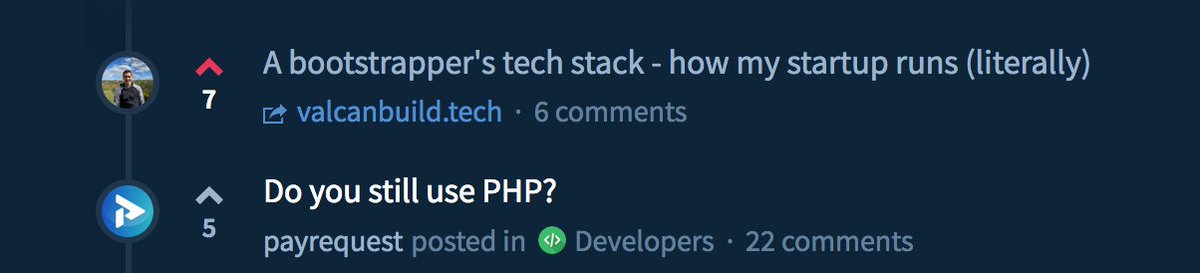 Love this. Right below my post about using @laravelphp for my startup. From @IndieHackerspic.twitter.com/9LZAESikiw