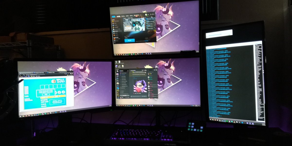 ISP decided there would be no stream last night, but I used the time to increase my power level by adding another monitor to my setup. One step closer to 5k SR and my true goal - becoming an evil hacker movie/TV villain with a cool lair containing an absurd amount of monitors.pic.twitter.com/1hT041A5H3