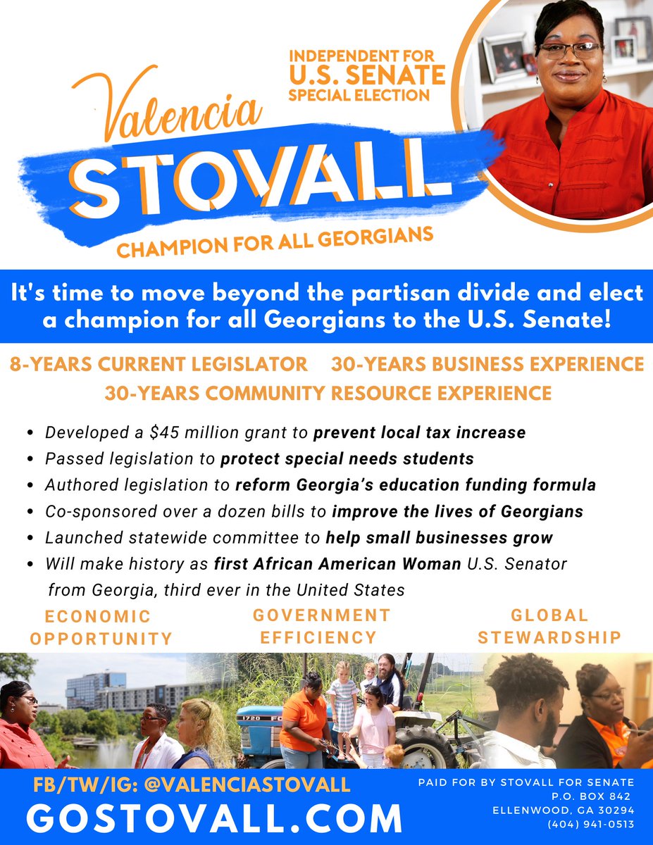 Late Ruth Bader Ginsburg said, “Fight for the things that you care about. But do it in a way that will lead others to join you. I will become the 1st blk woman to serve as U.S. Senator for Ga. Elect an Independent champion for ALL Georgians w/ proven leadership #StovallUSSenatepic.twitter.com/4q0pyFZ0JA
