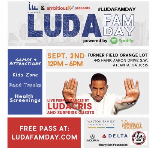 Bored on Sat Sept 2nd? Join @LudacrisFdtn @ambitiousXorg & #GoStovall Free pass http://www.Ludafamday.com family entertainment & funpic.twitter.com/2qRpxO6mkW