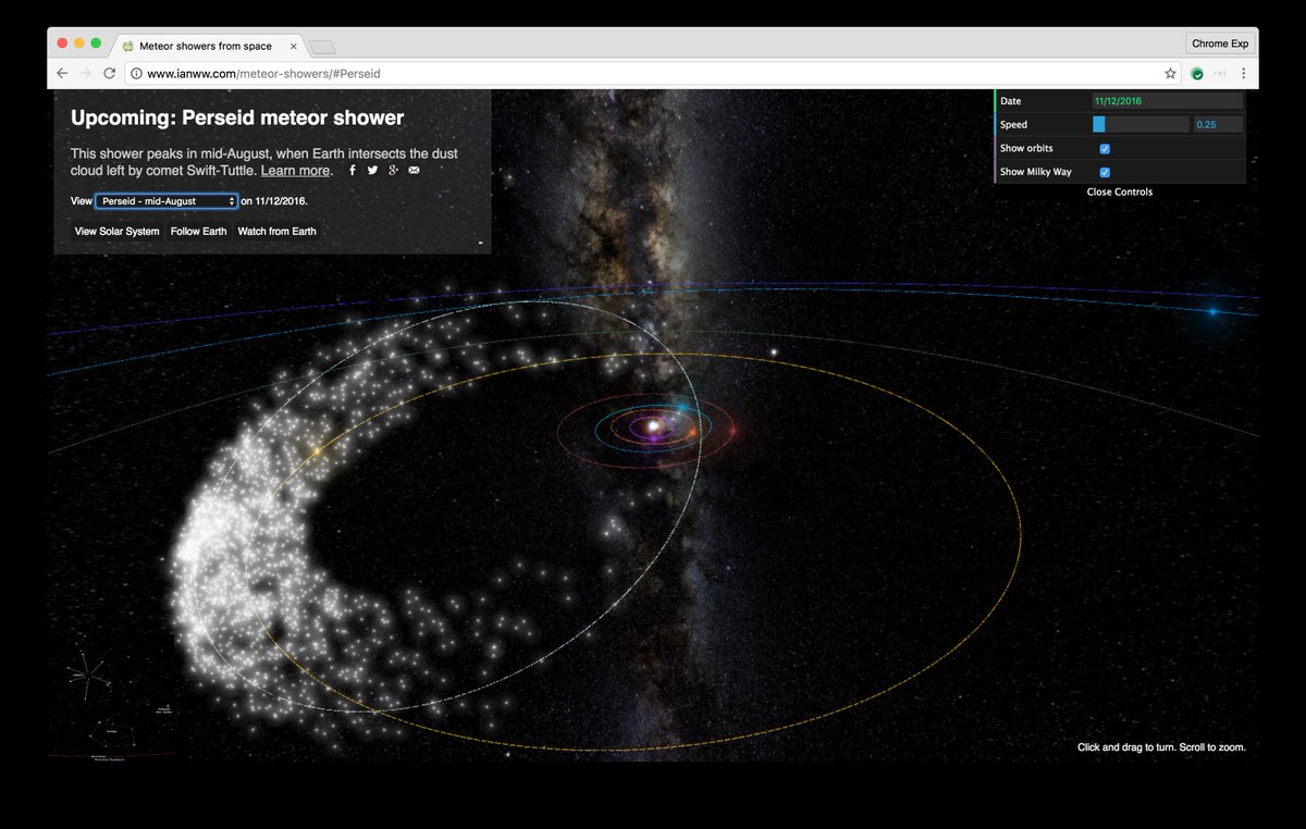 Meteor Showers - explore real meteor showers in this space visualization by Ian Webster https://www.chromeexperiments.com/experiment/meteor-showers …pic.twitter.com/tfYGSYMrnL