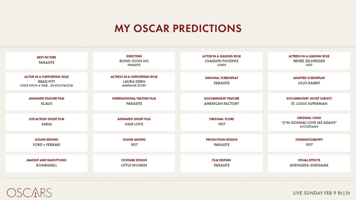 predictions! Think you can do better? DM @TheAcademy to make your picks!pic.twitter.com/QKMmBowwlX