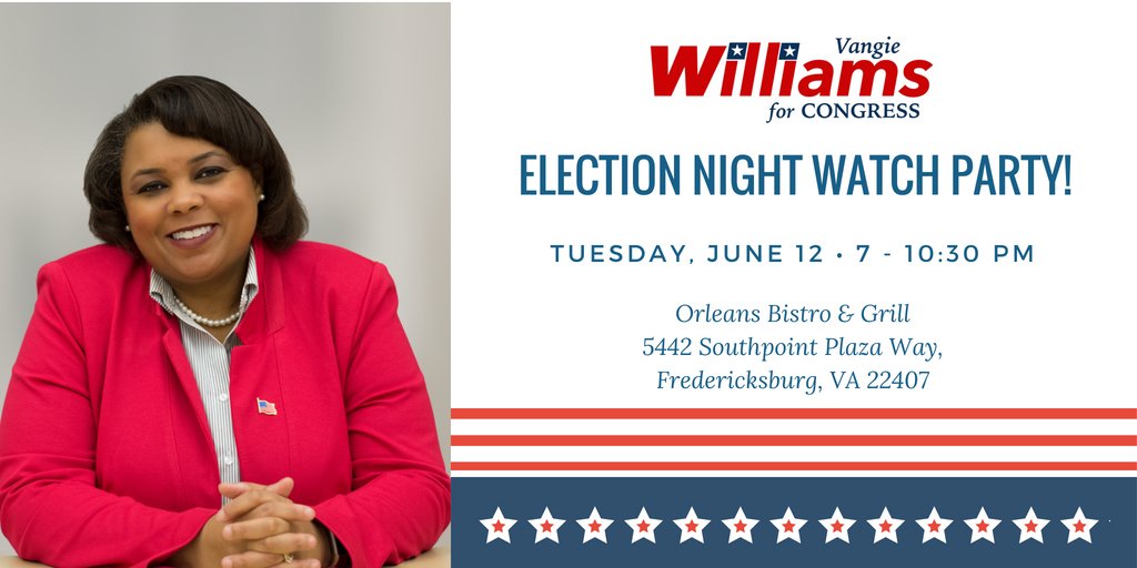 After you vote for me in the primary tomorrow, make sure to stop by and watch the votes get tallied at our viewing party at Orlean's Restaurant in Fredericksburg! I can't wait to see you there! http://bit.ly/2JqiTvD pic.twitter.com/sLzPWnBgkk