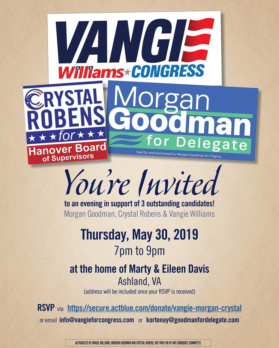 We're only hours away from our event with @MorganGoodmanVA and @robens2019! It's gonna be a great evening in Ashland starting at 7 PM tonight! I'll see you there.pic.twitter.com/4xGID1H6mm