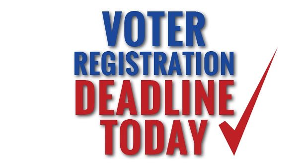 Only one hour left for in person voter registration! Check your registration status and get registered now! Deadlines: By mail: Applications must be postmarked by today. In-person: Applications must be submitted by 5 pm. Online: Applications must be submitted by 11:59 pm.pic.twitter.com/5dxQYuSzYz