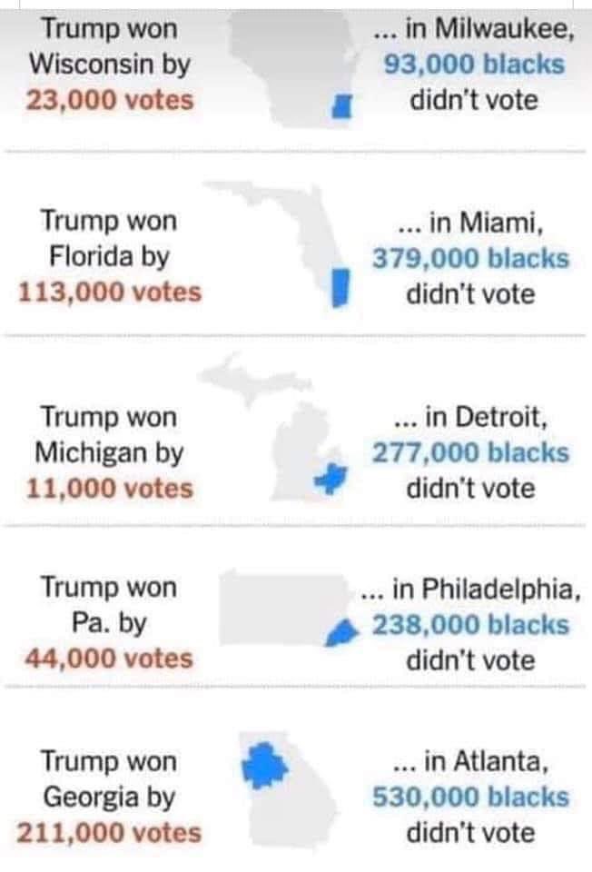 I understand and agree with your sentiment. But the details in this image are grossly inaccurate (eg, Atlanta has a total population of less than 500k & only about 52% identify as black, the numbers are WAY off here). While graphics like this don’t help, the cause is just: VOTE!