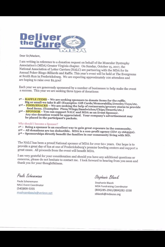 NALC, in partnership with the Muscular Dystrophy Assoc present Deliver The Cure on 10/15/17. Please help!pic.twitter.com/ejmTxmXNKe