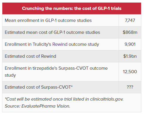 $LLY: outcome studies of GLP-1 agonists in diabetes cost on avg $860m, and the huge CVOT for tirzepatide could set a new record. Check out our look at R&D cost estimates from@evaluatepharma: https://www.evaluate.com/vantage/articles/analysis/spotlight/tirzepatides-time-shine-lilly …$NVOpic.twitter.com/oELkBNbwca