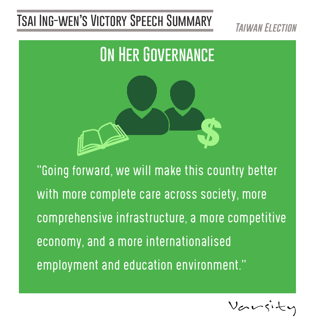 Earlier today, President Tsai Ing-wen spoke to reporters and her supporters in a presser. Varsity provides a few highlights and key points of her address.